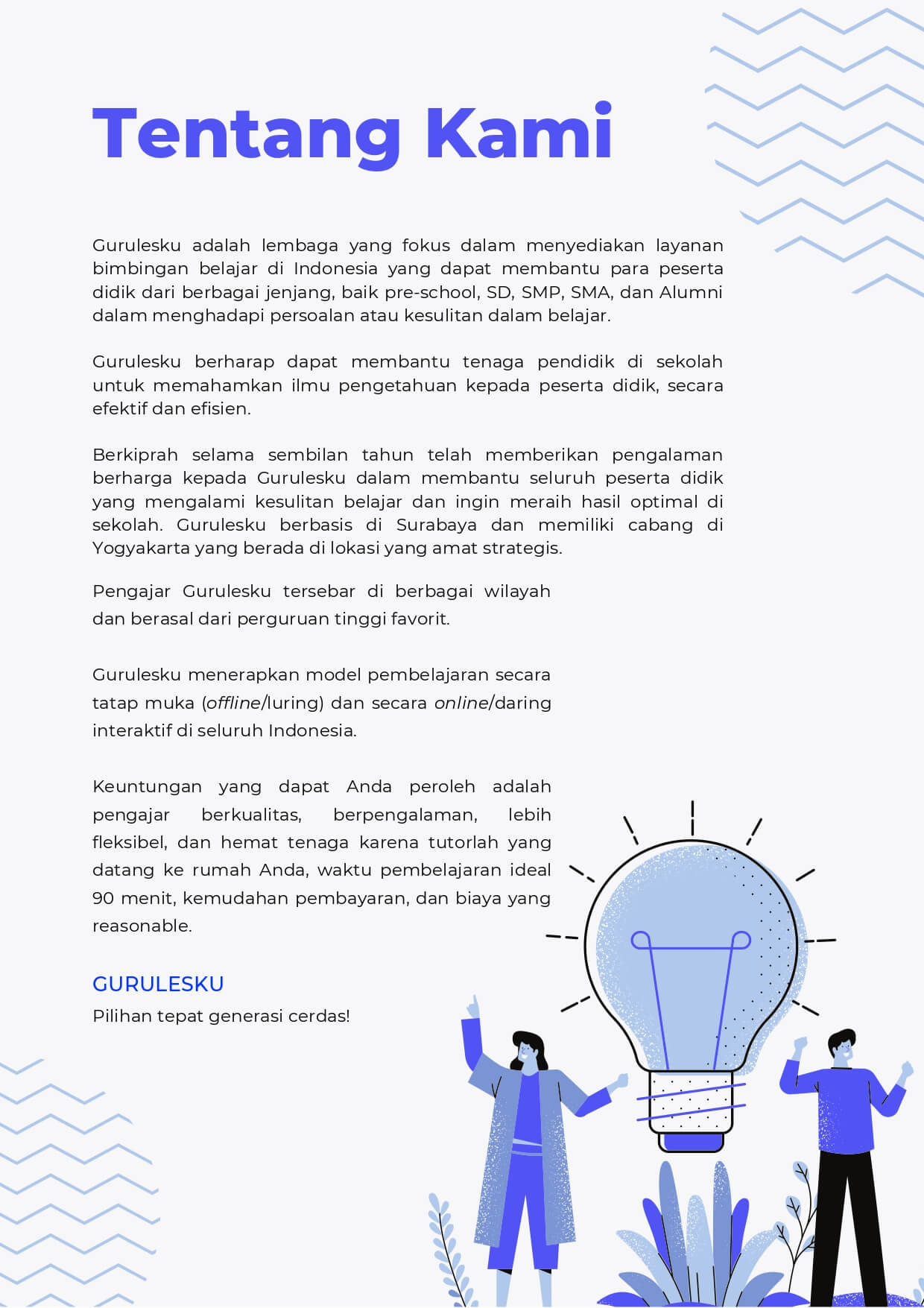 Bimbel Ujian Mandiri Surabaya di gurulesku.id menjadi solusi bagi para lulusan SMA atau pelajar kelas XII yang berniat untuk mempersiapkan diri mengikuti ujian mandiri di perguruan tinggi negeri yang difavoritkan. Didukung dengan mentor profesional berpengalaman dan materi ajar yang telah disesuaikan, tentunya bimbel ini dapat menjadi langkah untuk memperbesar peluang diterima di perguruan tinggi melalui jalur ujian mandiri. Hubungi kami!
